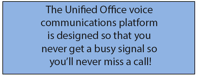 The Unified Office voice communications platform is designed so that you never get a busy signal so you’ll never miss a call!